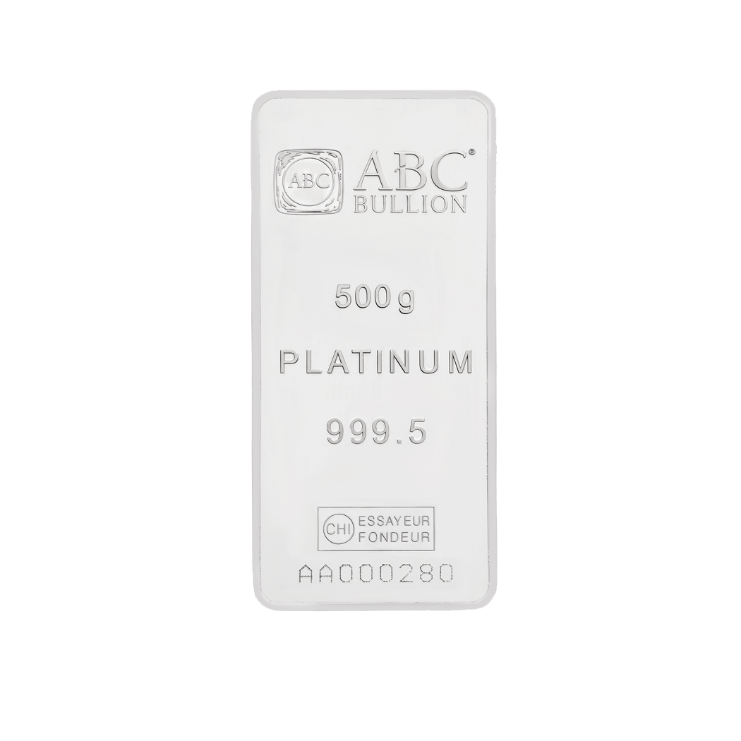 ABC 500g Platinum Minted Bar made from the finest 99.95% pure platinum.