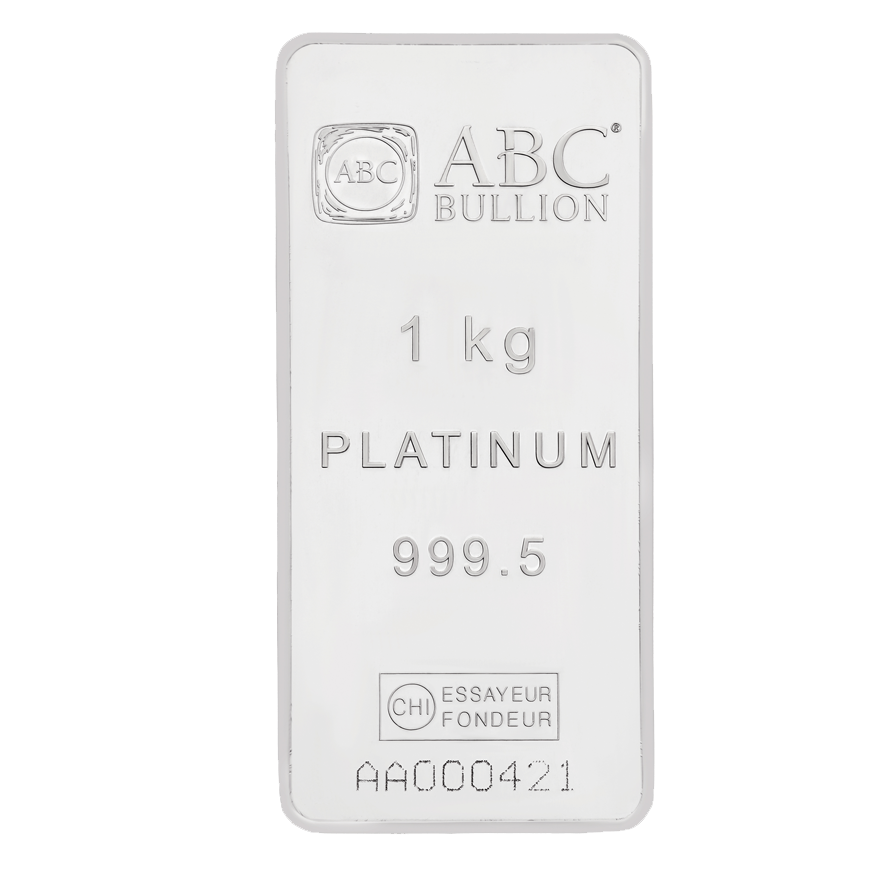 ABC 1kg Platinum Minted Bar made from the finest 99.95% pure platinum.